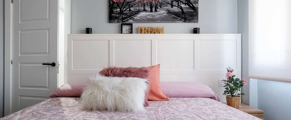 Para lograrlo, unimos cocina y salón multiplicando la claridad y optimizamos la distribución ganando funcionalidad. Pero el alma del proyecto reside en el dormitorio principal: un capricho diseñado íntegramente a medida en tonos blanco roto, logrando esa estética limpia y serena donde cada detalle encaja a la perfección.